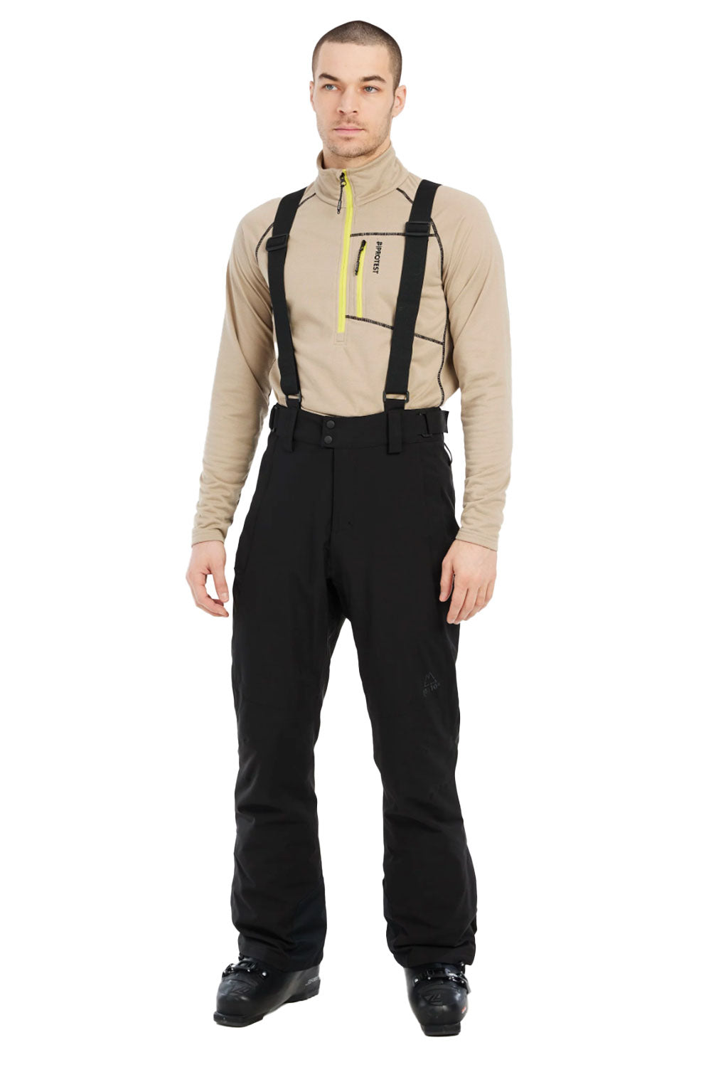 The Protest Rowens Snow Pants deliver reliable performance with 10K water resistance and 10g breathability to keep you dry and comfortable throughout your day on the slopes. Critically taped seams prevent moisture from seeping in, while breathable fabric allows internal perspiration to escape. Featuring adjustable waist and removable elastic suspenders, these pants offer a secure, customizable fit. Ergonomically shaped legs enhance flexibility and movement, making them an ideal choice for skiing and snowboarding in variable conditions.