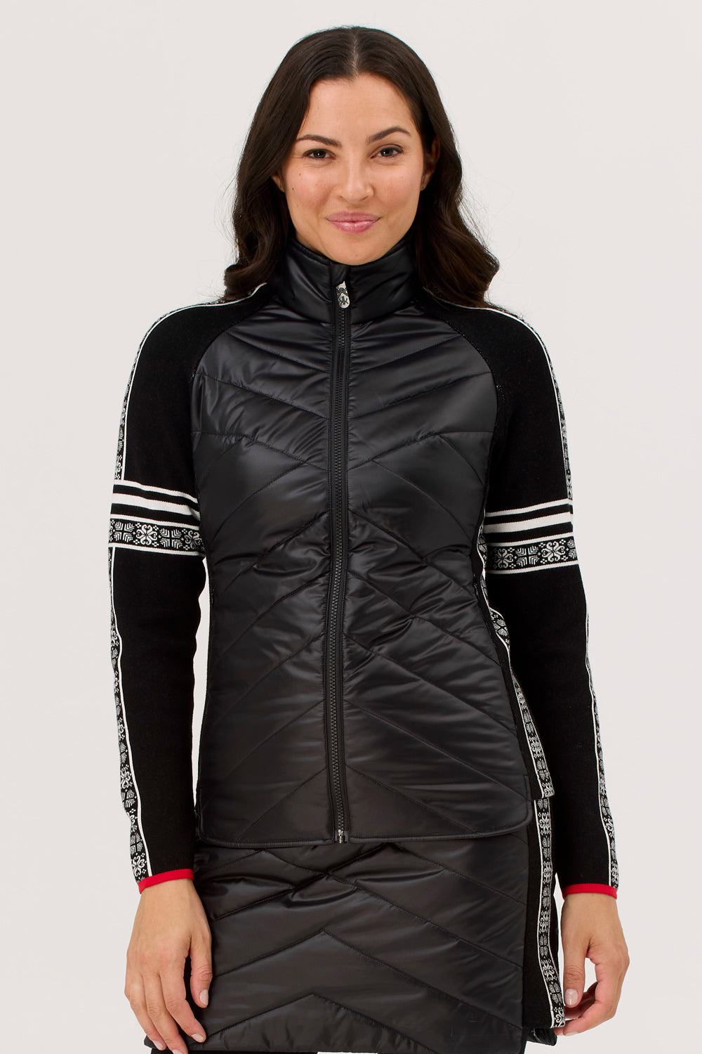 The Krimson Klover Switchback Jacket combines insulated warmth with a stylish knit hybrid design. Featuring patterned knit sleeves and side panels, this jacket offers both comfort and visual appeal. It includes a full-length zipper and zipper hand pockets for convenience. Treated with a durable water repellent (DWR) finish, it provides reliable protection against light moisture. Crafted from recycled and plant-based fibers, this jacket supports sustainable performance wear. Ideal for those seeking expert-level functionality with eco-conscious materials.